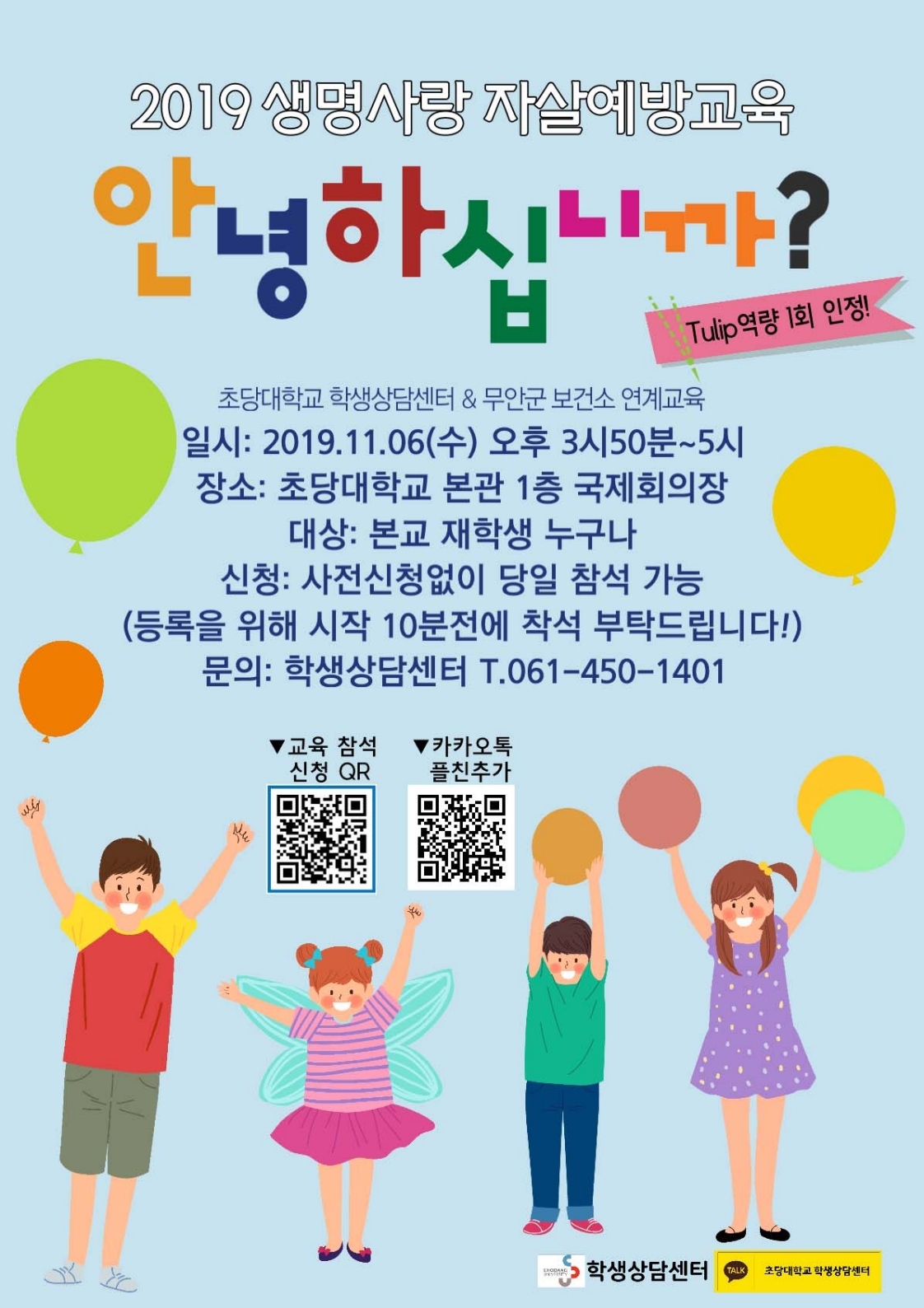 생명사랑 자살예방교육에 많은 참여 바랍니다~ 무려 Tulip역량 1건 인정!