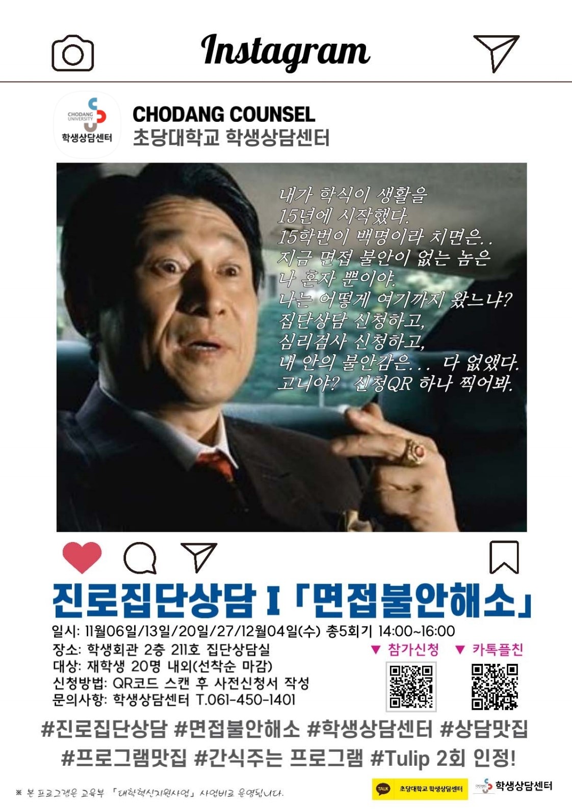 진로집단상담 면접불안해소 참가 신청 안내