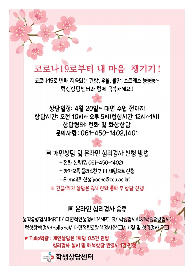 당신의 소소한 고민, 학생상담센터와 함께 하세요~