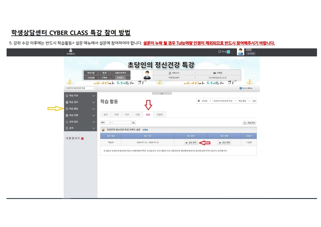 방구석에서 받아볼 수 있는 마음챙김 프로그램~ 참여하면 졸업인증제 Tulip 역량도 인정받을수 있습니다.