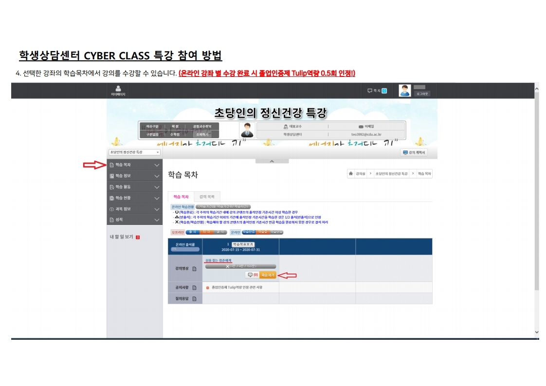(※ 본 프로그램은 수강하지 않아도 학점에 대한 불이익이 없으므로 수강의사가 없을경우 참여하지 않을 수 있습니다.)