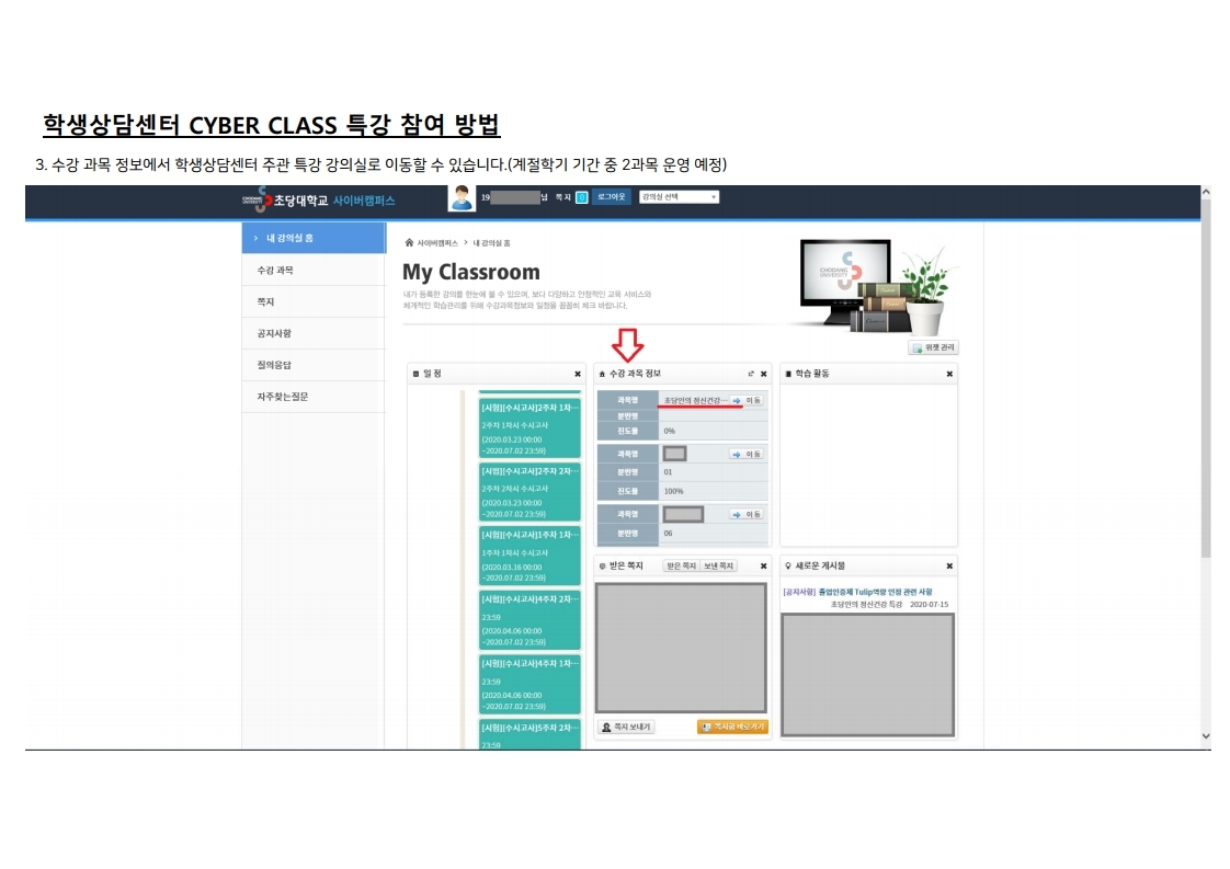 학생상담센터에서는 COVID-19 지속으로 인한 코로나블루 예방을 위하여 비대면 특강 프로그램을 마련하였습니다.