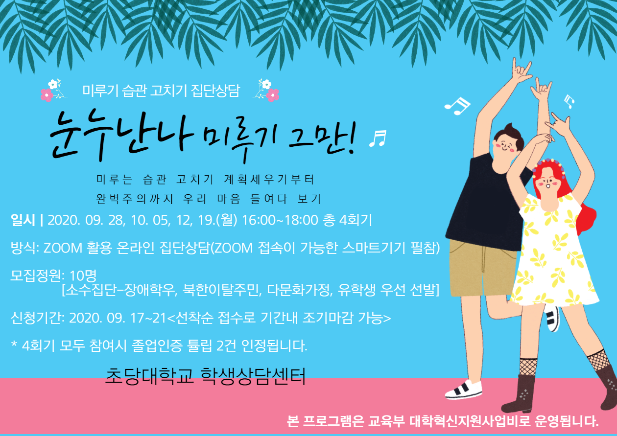 미루기 습관 고치기 집단상담은 마감일이 다가오는 리포트를 미루고 중요한 결정을 미루며
