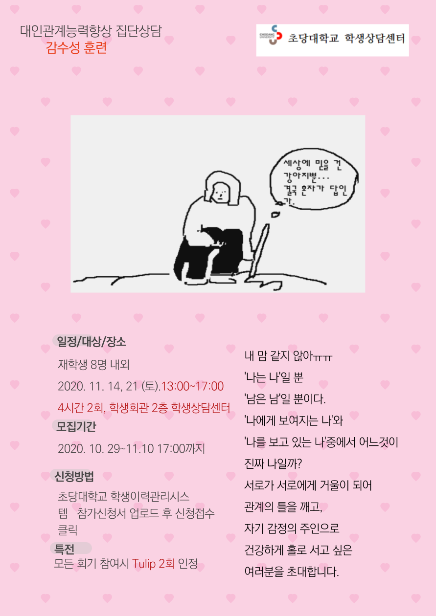 학생상담센터에서 실험적 체험학습의 기회가 될 대인관계능력향상 프로그램을 준비했습니다.