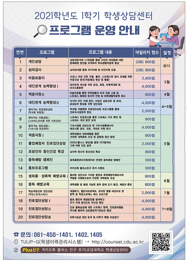 2021학년도 1학기 학생상담센터 프로그램을 안내하오니